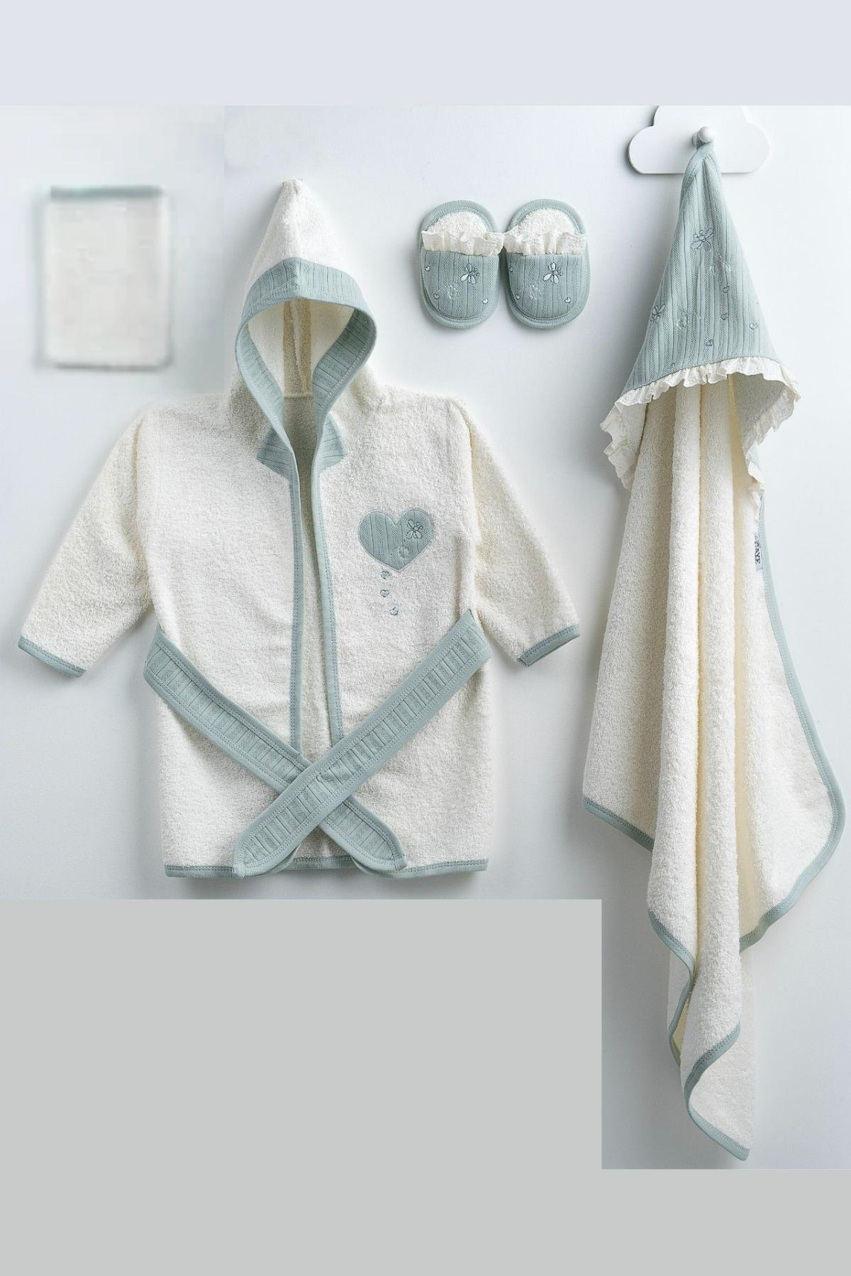 Kız Bebek Kalp Ve Yusufcuk Desenli Bornoz Set